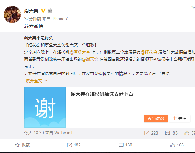 红花会发文道歉 因为擅自加唱挤占谢天笑表演时间双方和解